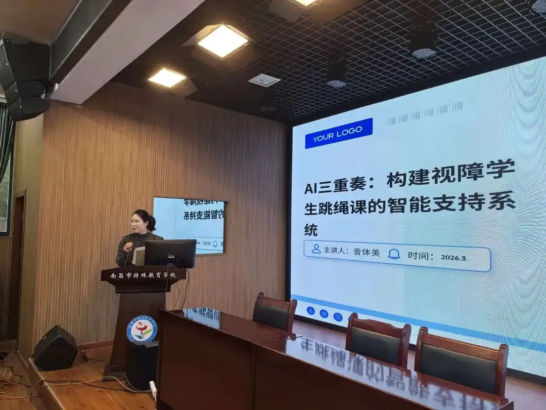 为深入贯彻落实《“十四五”特殊教育发展提升行动计划》中关于推进信息技术与特殊教育深度融合的精神,积极探索AI技术在特殊教育课堂的有效应用模式,3月26日至4月9日,南昌市特殊教育学校利用每周四教研活动时间,组织开展了为期三周的“AI技术赋能课堂”专题展示活动。全校13个教研组代表依次登台,围绕人工智能在特殊教育课堂中的实际应用与深度思考进行分享交流,旨在推动信息技术与特教学科教学的系统融合,提升教师数字素养。