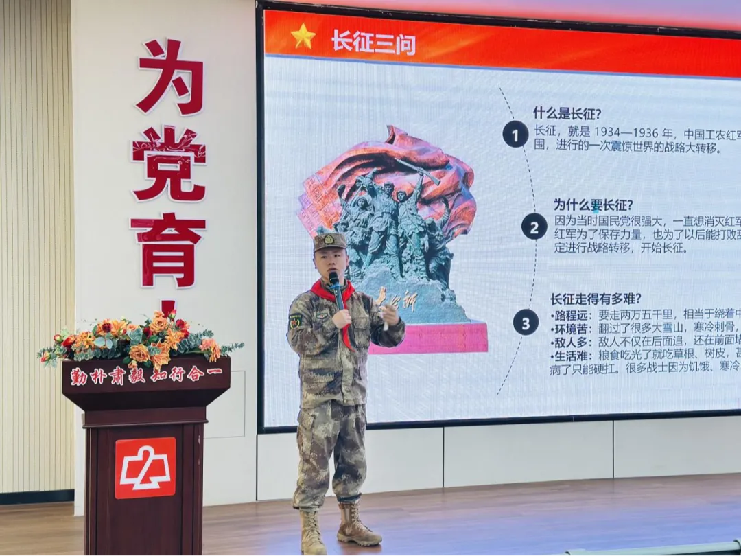 在第11个全民国家安全教育日来临之际,为深入贯彻落实习近平总书记关于少年儿童和少先队工作的重要论述,引导少先队员树立总体国家安全观,增强国防意识与爱国情怀,我校以“长征精神代代传 国防教育润童心”为主题,精心策划系列活动,通过“线下讲座+实地参观+线上微课”的形式,构建家校社联动的国防教育新模式,让红色基因融入血脉,让国防种子生根发芽。