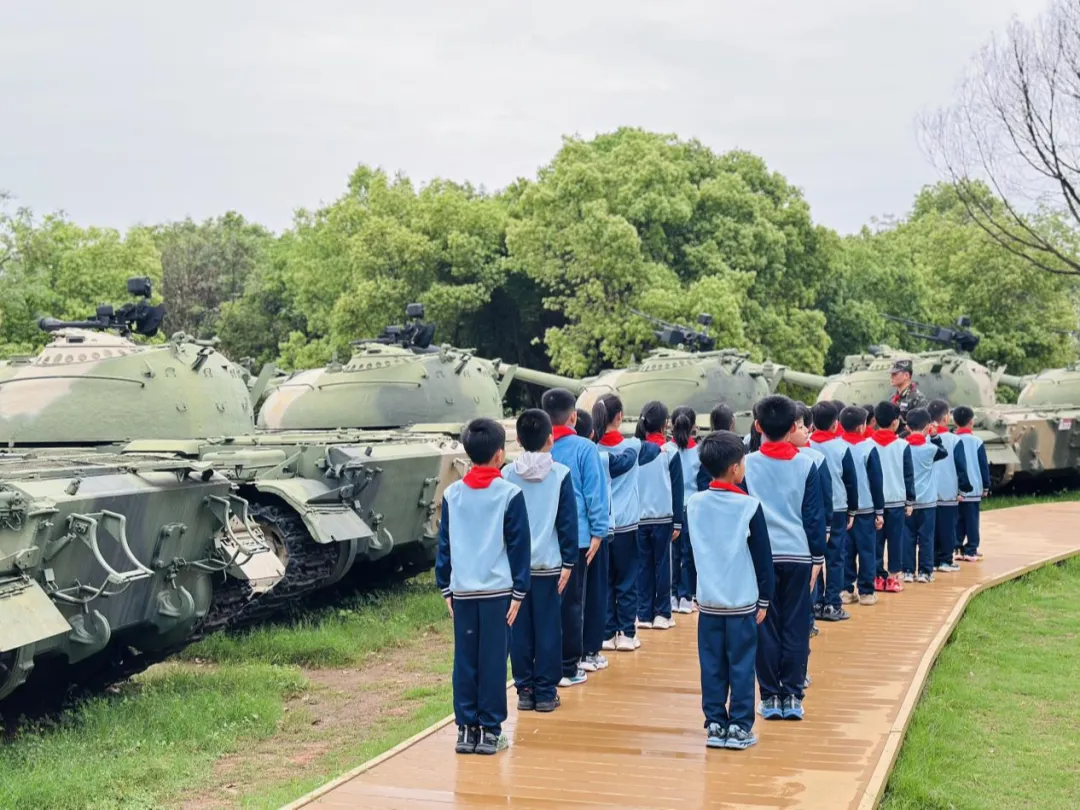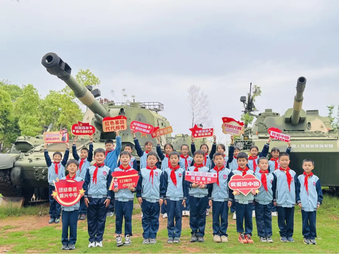 参观后,“我的国防梦”分享会在公园展开。队员们纷纷表示:“今天的幸福生活是红军用鲜血换来的,我们要像爱护眼睛一样爱护国家安全!”活动最后,全体人员在标志性军事装备前合影,红领巾与国防重器交相辉映,定格下“强国有我”的青春誓言。