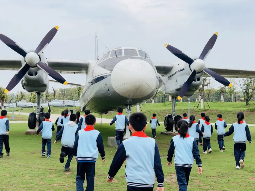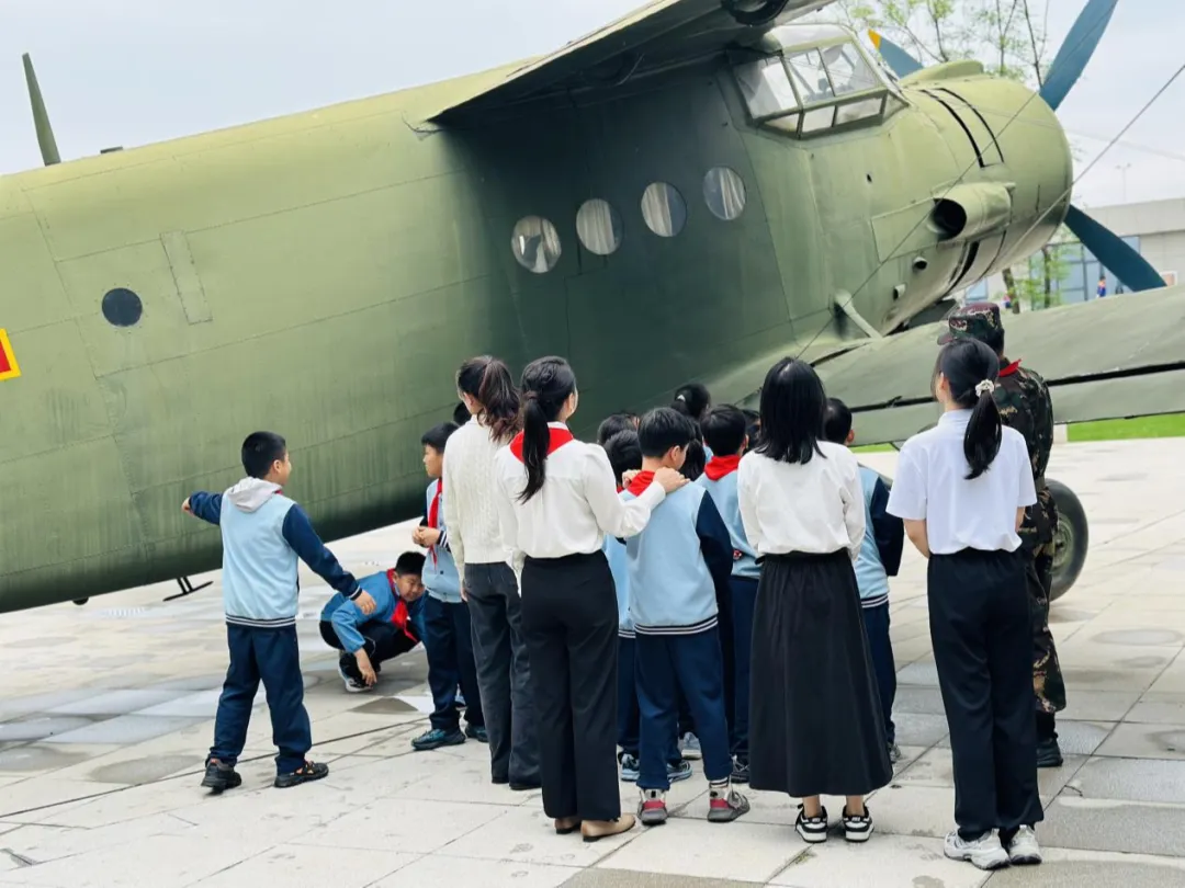 4月15日下午,学校组织少先队员代表前往南昌军事主题公园开展沉浸式国防教育。这是继之前理论学习后,学校“行走的国防课堂”的重要实践环节。在教官和老师们的引导下,队员们近距离参观了装甲车、战斗机、航空炸弹、坦克等军事装备实物及模型。从坦克的厚重履带,到战机的流线机翼,每一件展品都承载着国防科技的发展历程。“这些武器是如何保卫国家的?”“现代国防与长征精神有什么联系?”队员们积极提问,在互动中理解“强国必须强军,军强才能国安”的深刻内涵。
