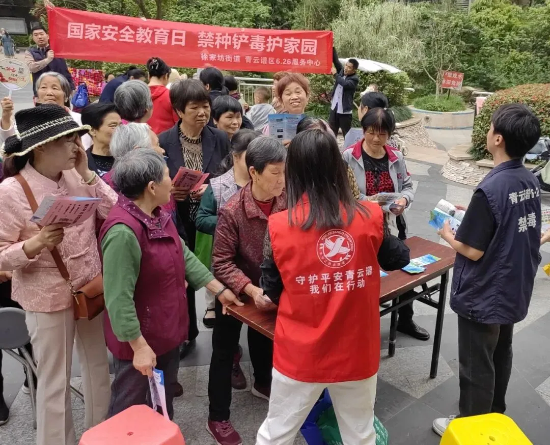 青云谱区禁毒大队、青云谱区6·26服务中心联合徐家坊街道走进中支桥社区,开展以“国家安全教育日,禁种铲毒护家园”为主题的禁毒宣传活动