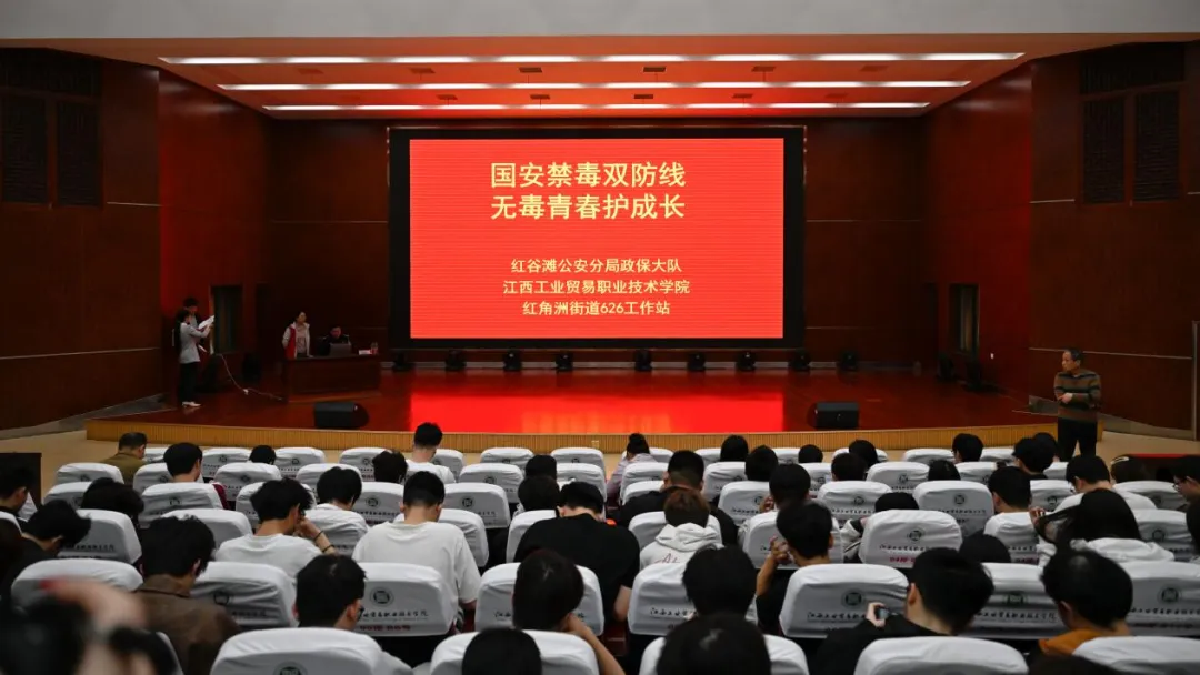 红谷滩区红角洲街道6.26工作站联合红谷滩公安分局政保大队在江西工业贸易职业技术学院开展“国安禁毒双防线 无毒青春护成长”为主题的禁毒宣传活动