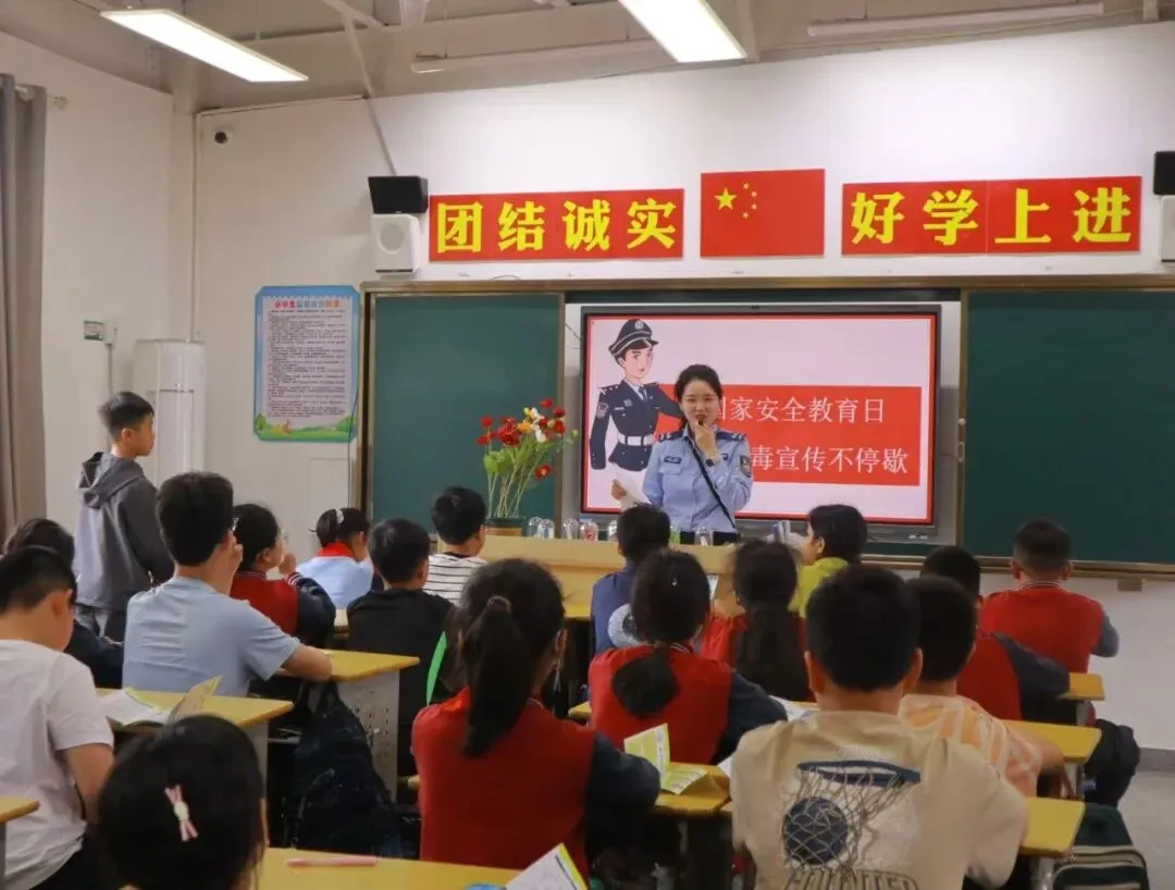 安义县禁毒民警走进安义中学,开展以“国家安全记于心 禁毒宣传同步行”为主题的禁毒宣传教育活动