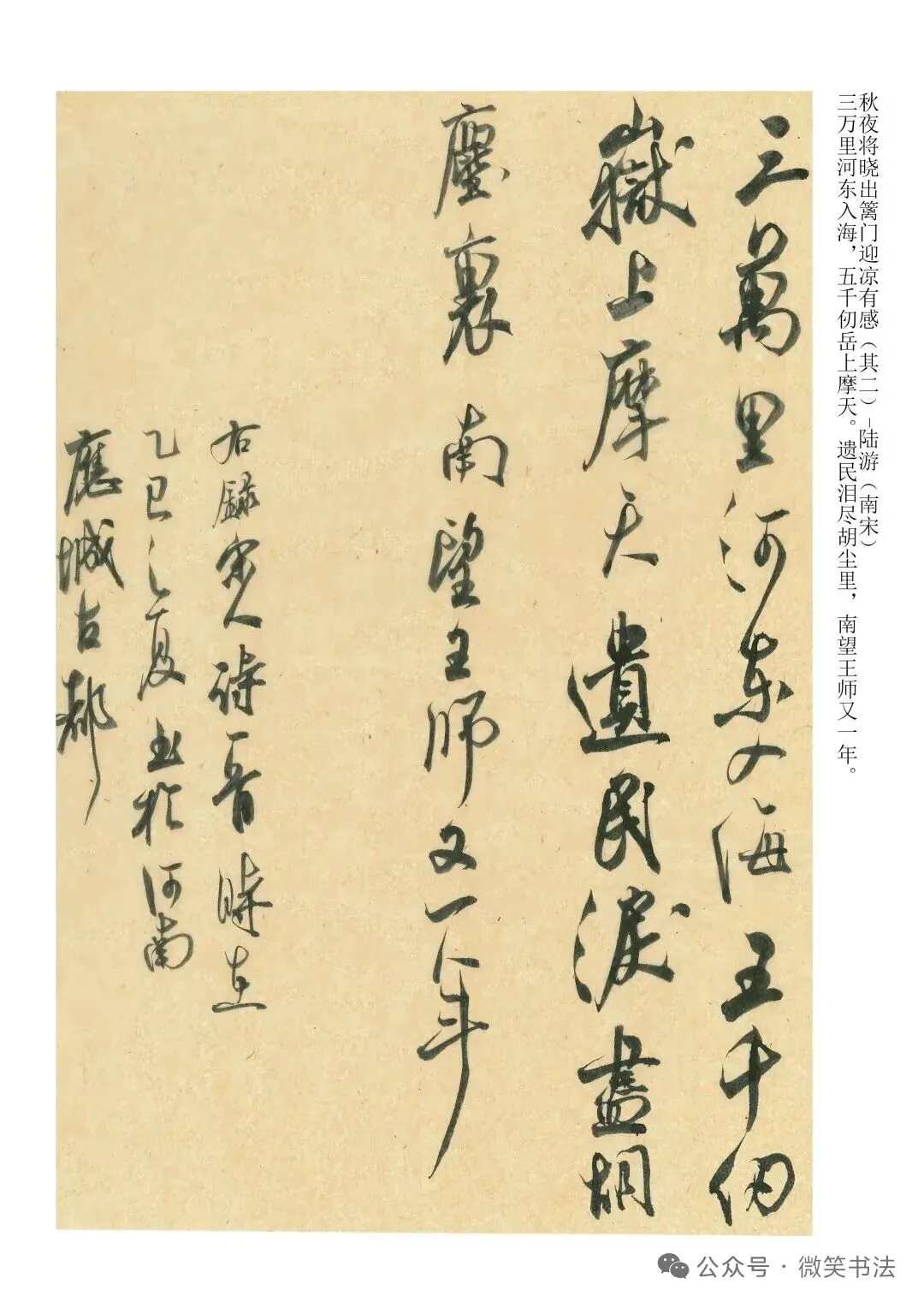 此时的王铎,书法艺术已臻化境。这幅作品虽为行书,却处处流露草书的奔放意趣,笔力雄健,气势贯通。其用笔中侧兼用,线条沉着而痛快;墨色从丰润到枯涩,变化自然,仿佛与诗意的起伏同呼吸。在五十五岁这个技艺与心性皆成熟的阶段,王铎将二王法度与个人创造熔于一炉,使笔墨不仅传达文字,更成为了情感与境界的直观载体。观看此作,我们得以窥见一位中年文人在动荡岁月中,借由书法所安顿的精神世界。