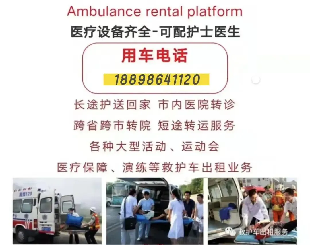 我们是救护车出租转运公司,120救护车接送病人预约护送。24小时为术后康复、危重患者及跨区域就医人群提供专业医疗转运服务,提供120救护车出租‖救护车转运‖私人120救护车(非急救)‖跨省长途转运‖危重病人转运‖市内转运‖术后康复病人转运‖高铁病人转运‖患者返乡‖大型活动赛事保障‖配备ICU设备:呼吸机▪心电监护仪▪吸痰器•微量泵•氧气▪急救药箱▪专业医护团队24小时转运病人电话:4006171120