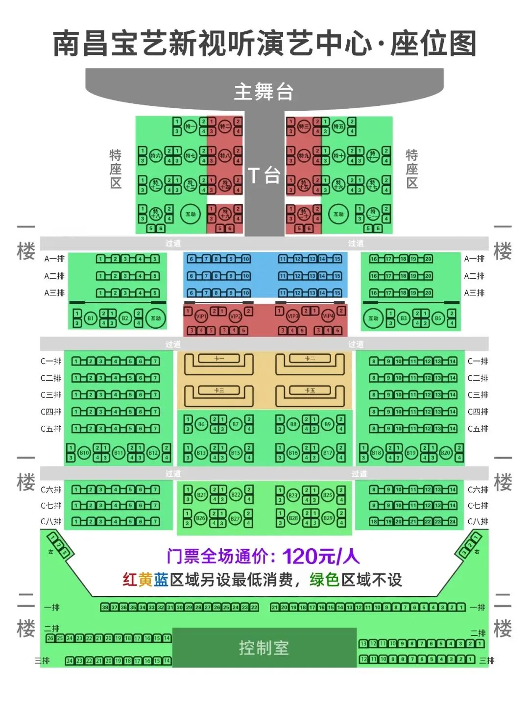 (红黄蓝区域另设最低消费)