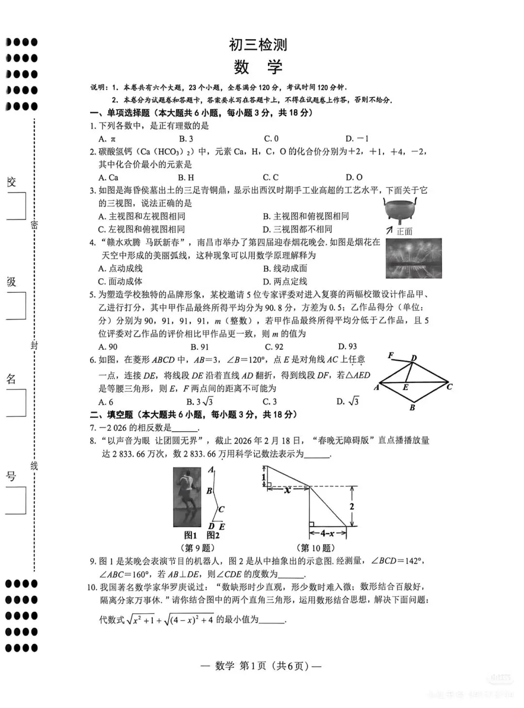 初三一模是中考前最重要的一次全真检测,尤其是数学学科,直接映射学生知识短板、应试能力,也为后续冲刺指明方向。针对本次南昌初三数学一模试卷,结合江西中考命题规律,做全面专业的考情分析,方便各位老师精准教学、家长理性看待孩子成绩。