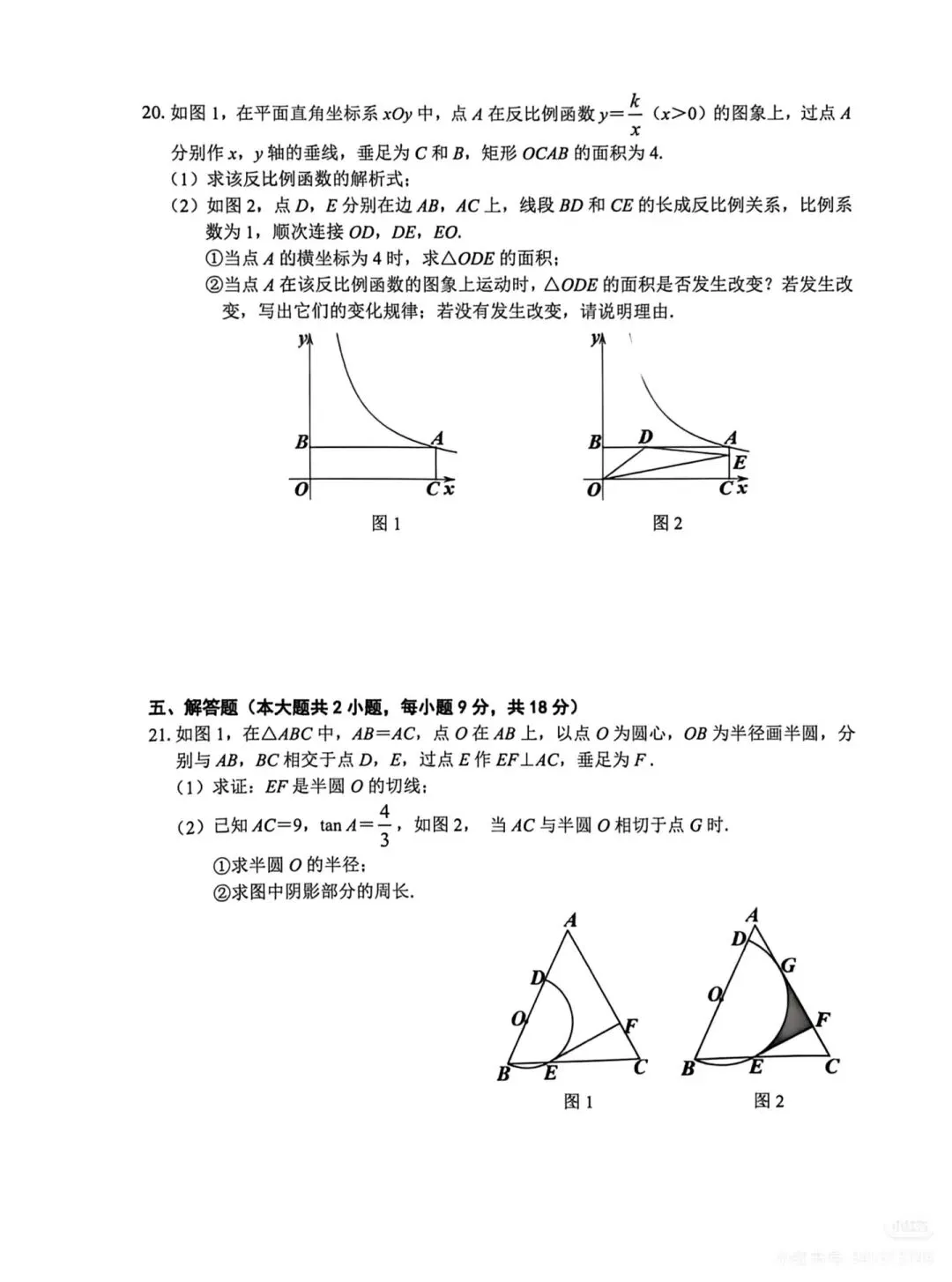 2. 中档解答题(17-20题):江西中考特色无刻度直尺作图、解直角三角形实际应用、统计图表综合、反比例函数综合(矩形面积求解析式+反比例关系应用),侧重知识综合运用与数学应用能力,是中等生提分关键