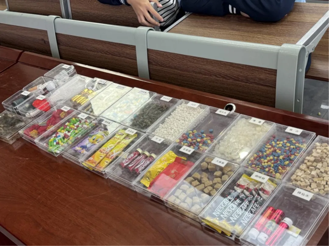 课后,民警家长还带领部分同学近距离参观了毒品仿真模型,手把手教同学们辨识各类伪装毒品,进一步加深了同学们对毒品的认知,让“珍爱生命,远离毒品”的理念深植心中。