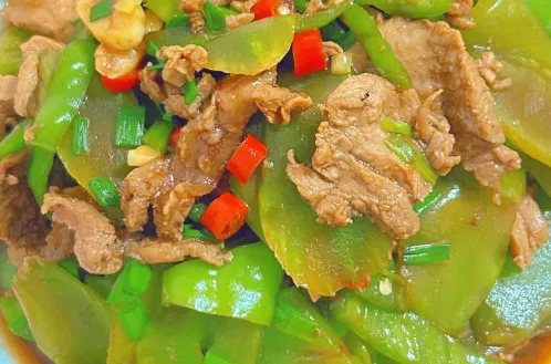 白玉菇炒肉(白玉菇70克、瘦肉丝40克、片片香肠10克)