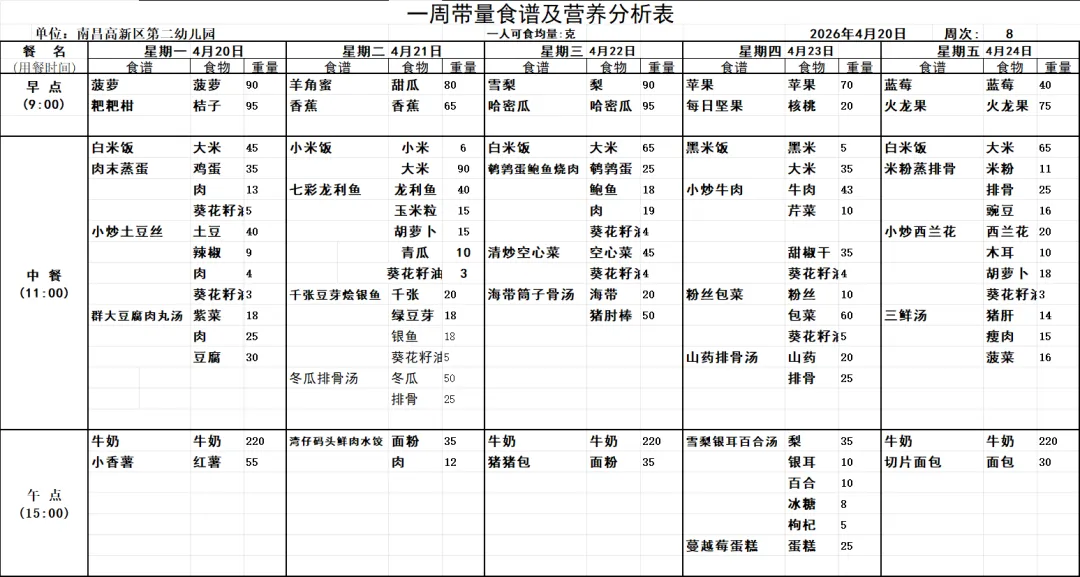 如遇市场材料缺货,酌情会调整食谱,敬请谅解!