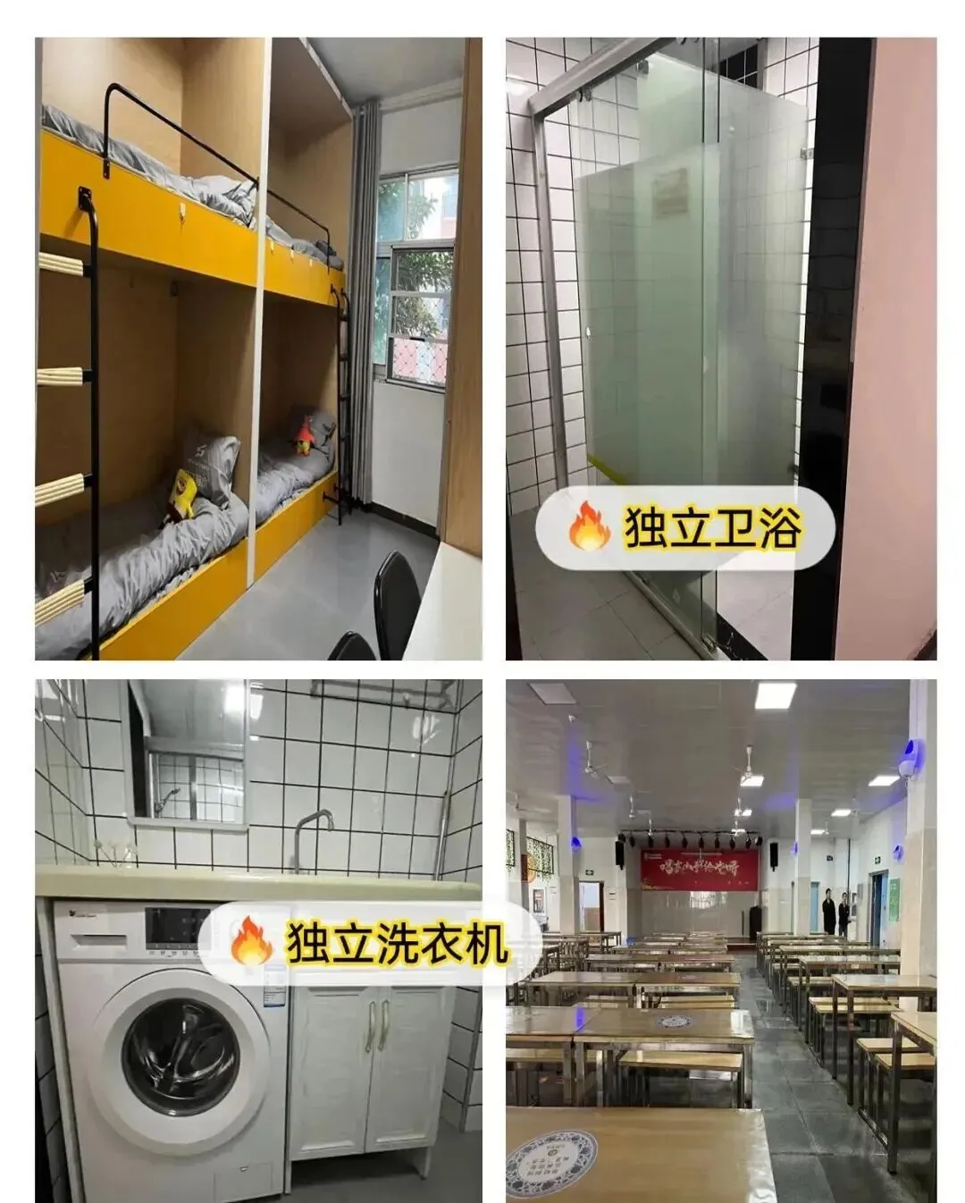 生活区:4-6人间温馨宿舍,空调、独立卫浴、24小时热水、实木床具一应俱全,保障学子优质睡眠,为高强度备考储备充足精力;标准化食堂每日提供新鲜果蔬、荤素搭配的营养餐,兼顾口味与健康,严格把控饮食安全,让学子吃得安心、学得放心;校内还设有休闲区、运动场地,学习之余可适度放松,做到劳逸结合,缓解备考压力。