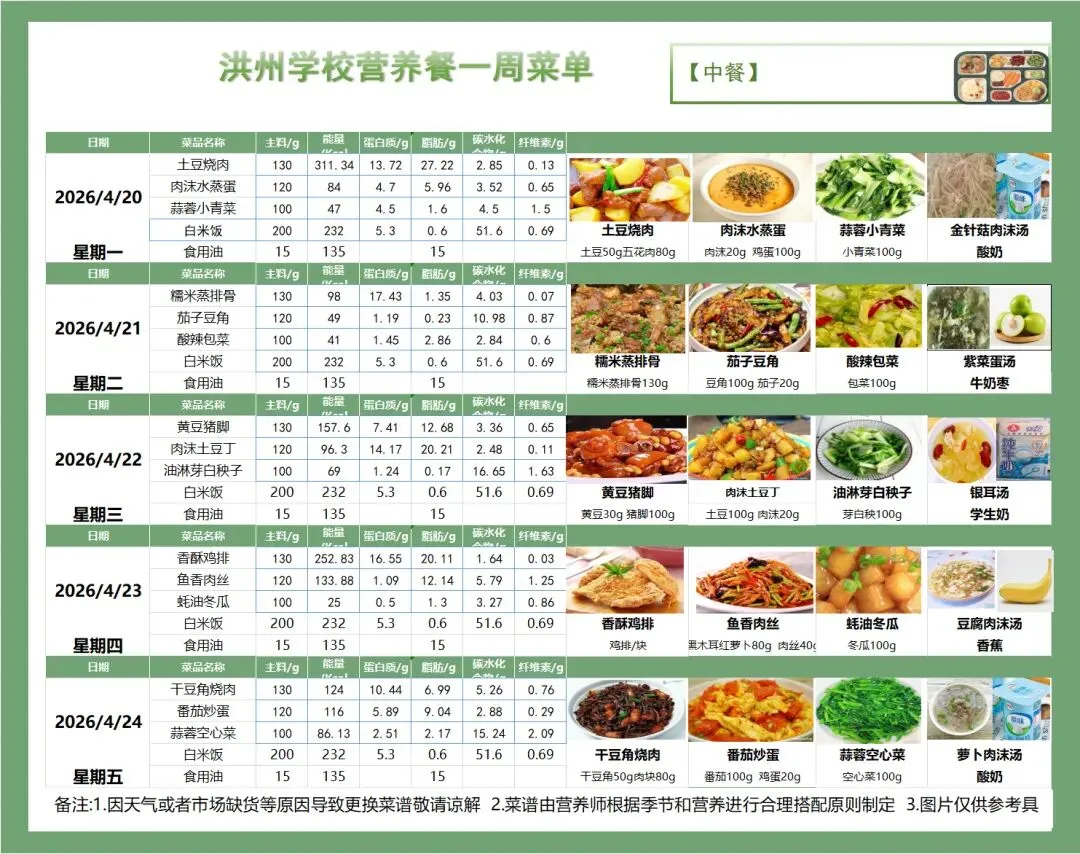 为了让您清晰了解孩子的在校饮食情况,现将本周营养食谱公布如下。