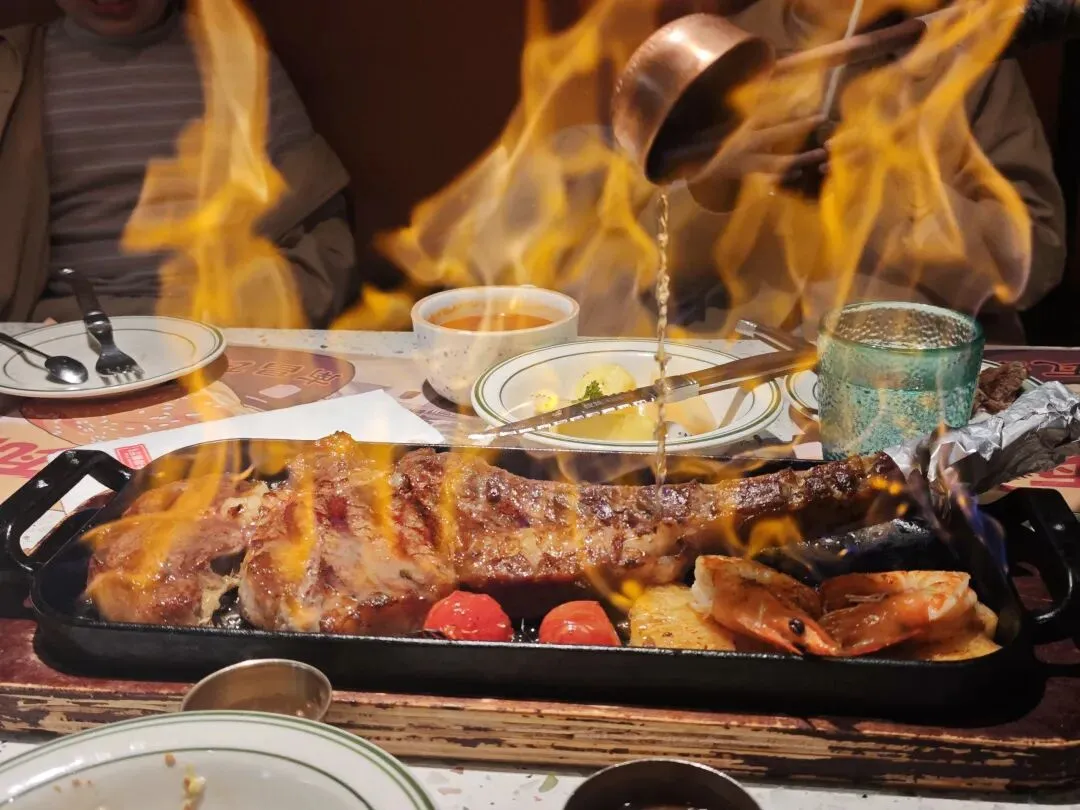 中午我们吃的战斧牛排,点牛排,配餐无限量畅吃