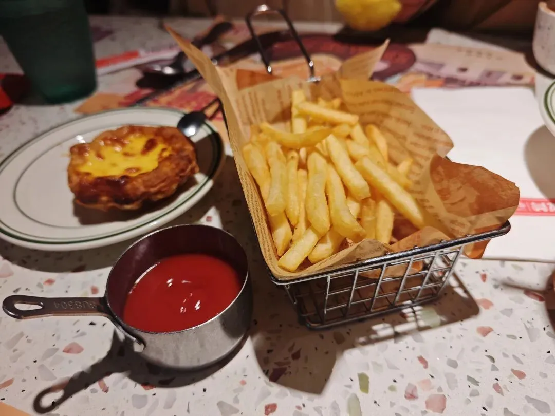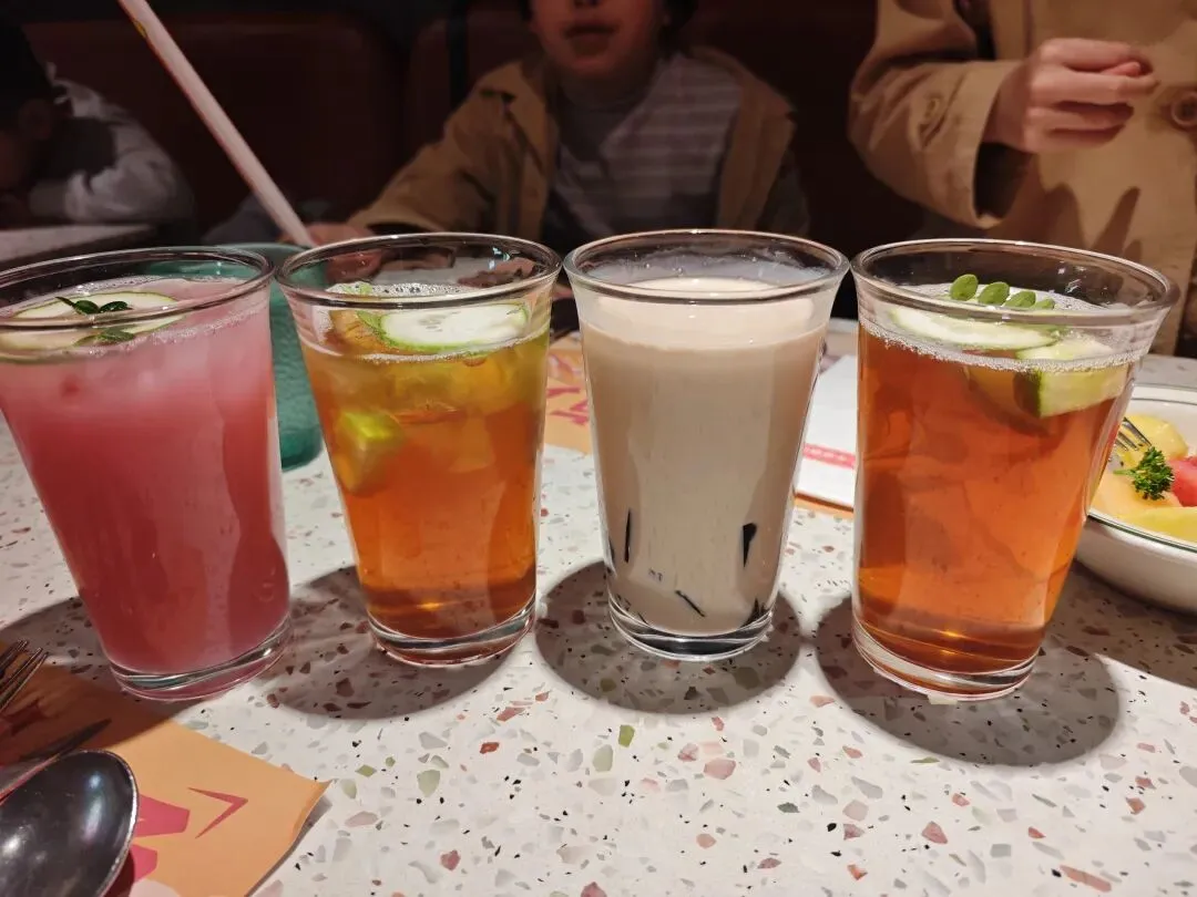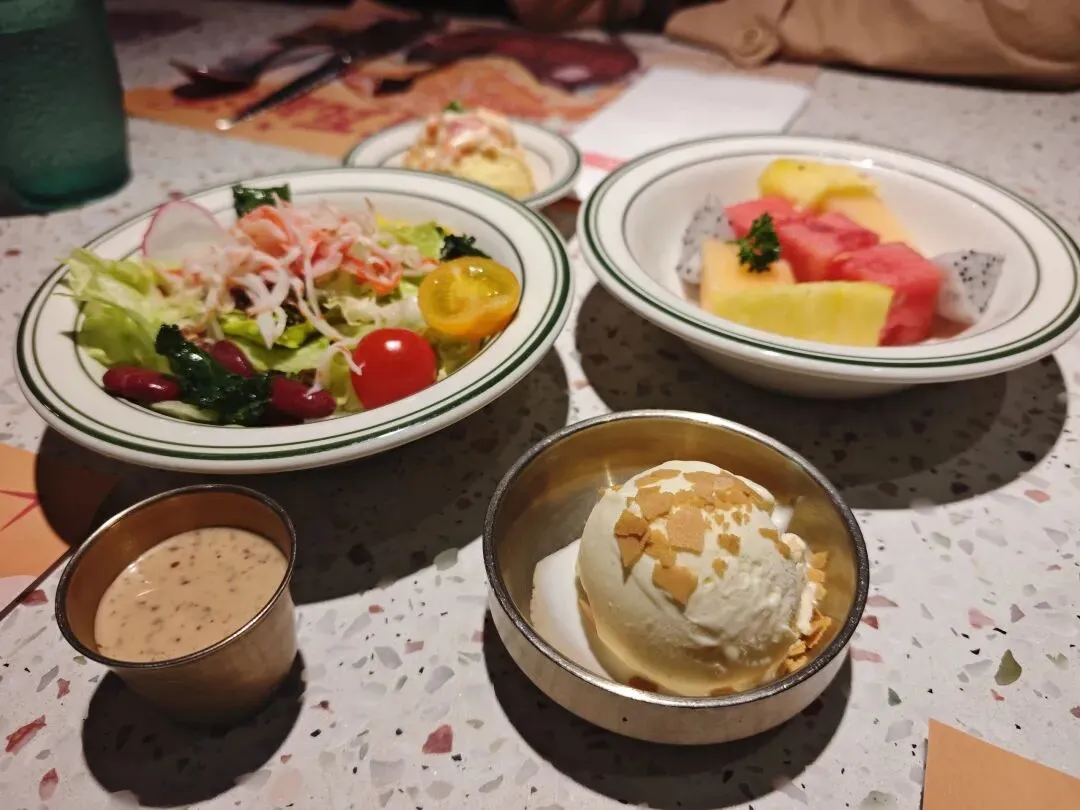 这些饮料、色拉、甜点、冰淇淋都是无限量的,但蜜蜜就是要点薯条,那个要收费