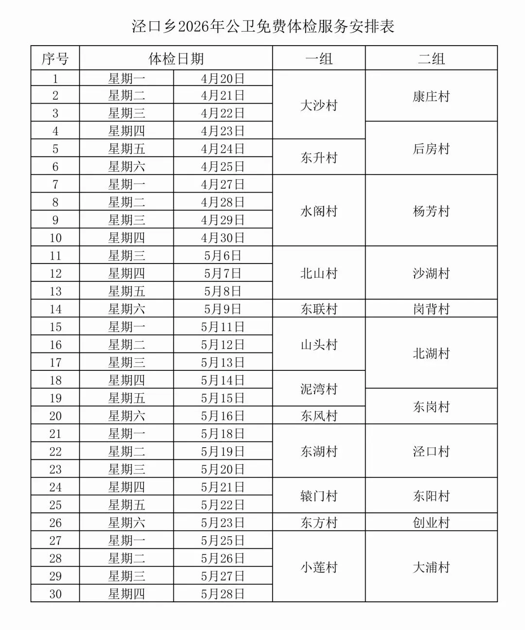 ·若错过集中体检时间,可自行前往泾口乡卫生院参检(参检时间:8:00-11:00)