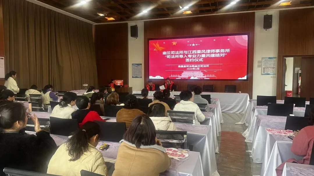 3月5日,秦风律所与幽兰镇公共法律服务站在幽兰镇新时代文明实践所举行“站所对接”签约仪式。秦风律师还开展了“有法帮你·关爱妇女权益”宣讲活动。