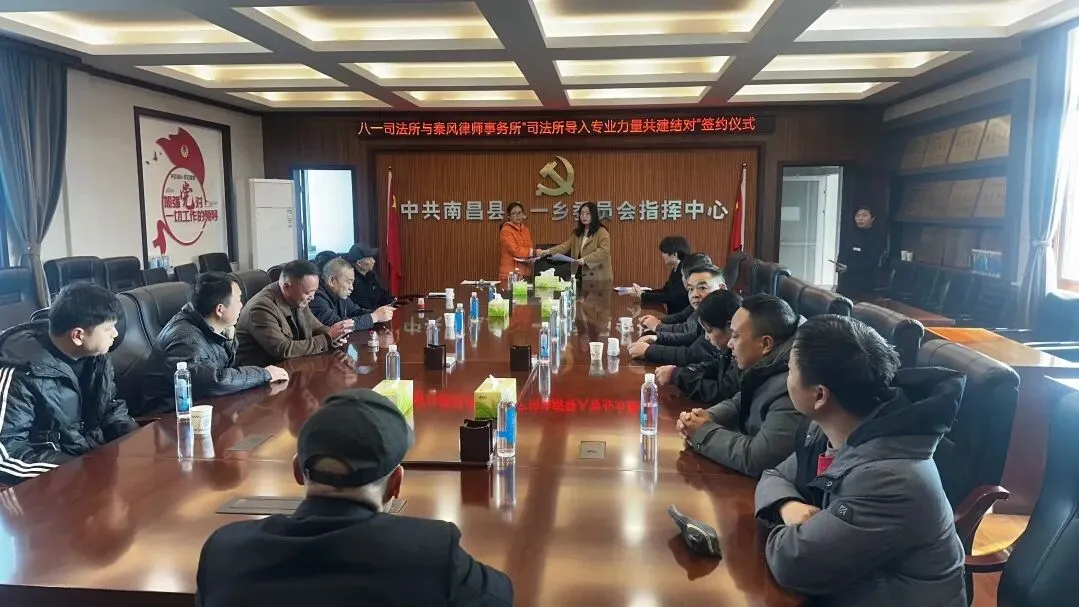3月6日,八一司法所与秦风律所“司法所导入专业力量共建结对”签约仪式,在八一乡委员会指挥中心成功举行。