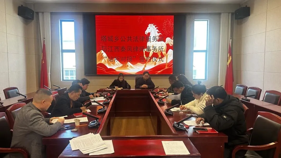 3月10日,塔城乡公共法律服务站与秦风律所“站所对接”签约仪式在塔城乡文化馆成功举行。