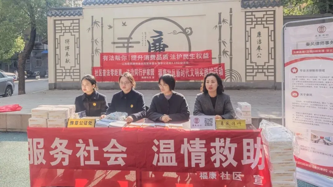在第44个“3·15”国际消费者权益日来临之际,3月13日,秦风律所携手豫章公证处走进福康社区,开展3·15公益法律咨询活动。