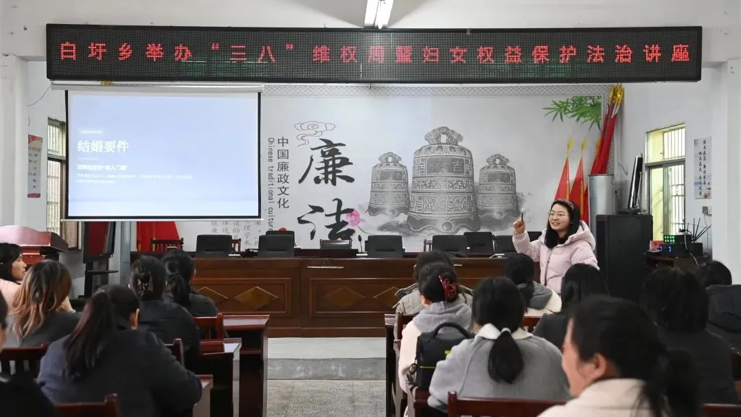 3月6日,秦风(进贤)律所在白圩乡举办“三八”维权周暨妇女权益保护法治讲座。