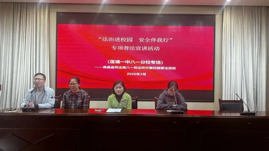 3月27日,秦风(南昌县)律所联合八一司法所,在莲塘一中八一分校开展“法治进校园 安全伴我行”专项普法活动。