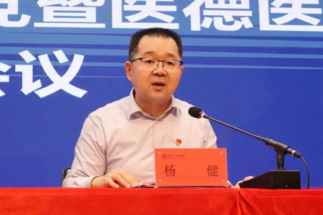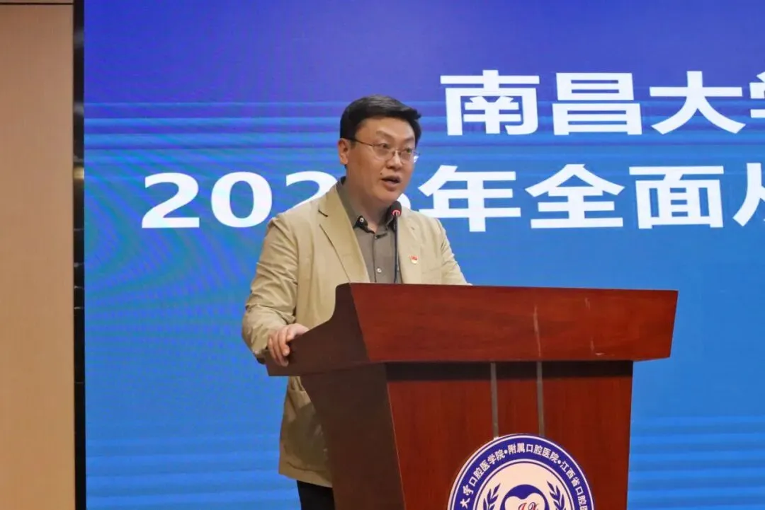 4月15日,南昌大学口腔医(学)院召开2026年全面从严治党暨医德医风建设工作会议,会议以习近平新时代中国特色社会主义思想为指导,深入学习二十届中央纪委五次全会、省纪委十五届六次全会、全省卫生健康行业党的建设和全面从严治党暨医德医风建设工作会议,以及南昌大学全面从严治党大会暨深化教育领域腐败整治工作部署会会议精神,总结了医(学)院2025年全面从严治党和医德医风建设工作,部署了2026年重点任务。党委副书记、院长杨健主持会议,全体院领导出席会议。