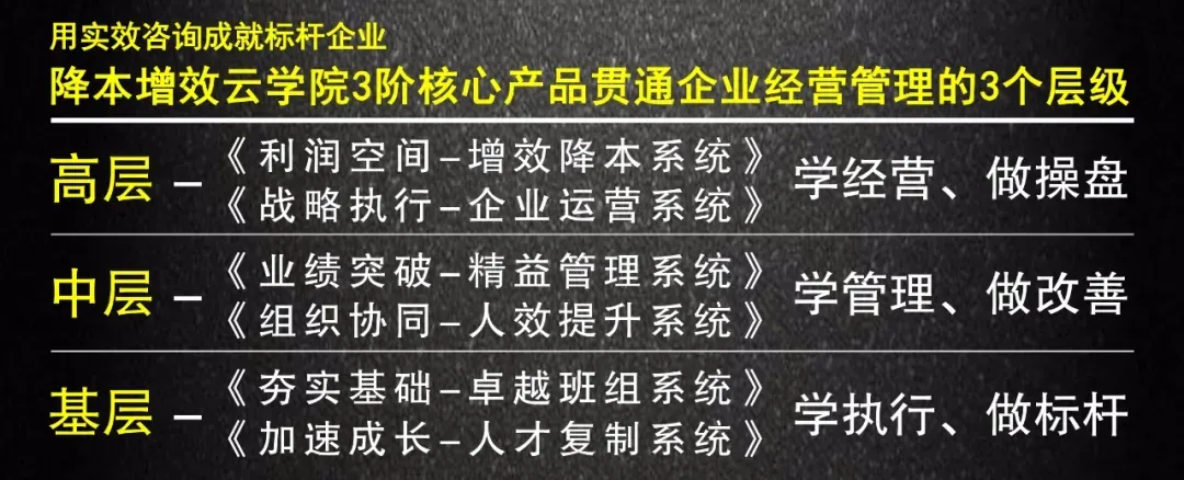 由降本增效云学院姜上泉导师原创研发的《极致成本工作坊》是其《降本增效系统》的升级版培训与咨询系统。20年以来,降本增效系统成功走进清华大学、北京大学、中山大学、山东大学、上海交通大学与多个省市区政府部门及178家世界企业500强和中国企业500强。