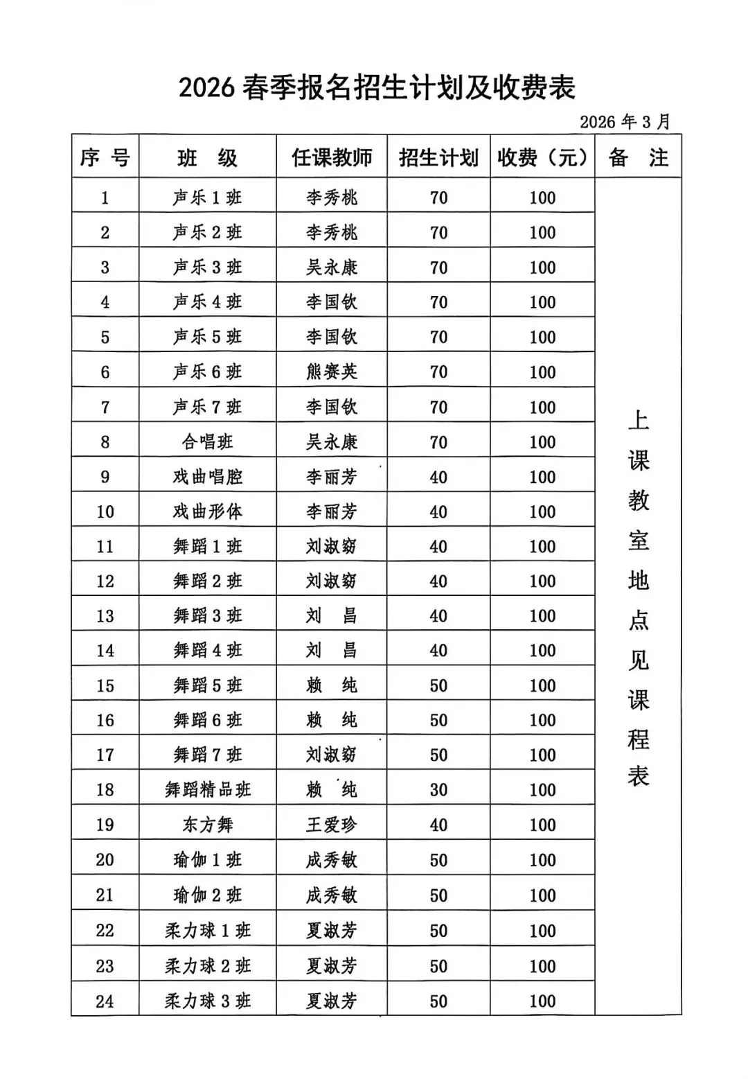 四、开学时间:2026年3月9日(周一)开学,2026年6月26日(周五)结束。具体有变化另行通知,学员按照课程表上的安排来校上课(课程表附后)。