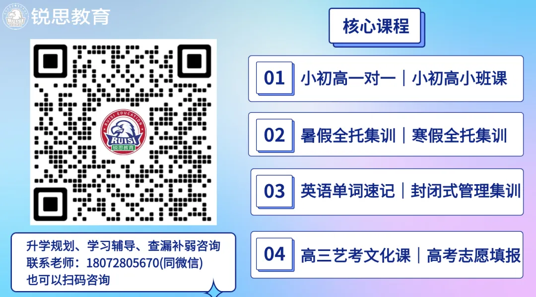 点击关注“锐思家长圈”公众号平台,学习备考不迷路。咨询联系老师:18072805670(同微信)