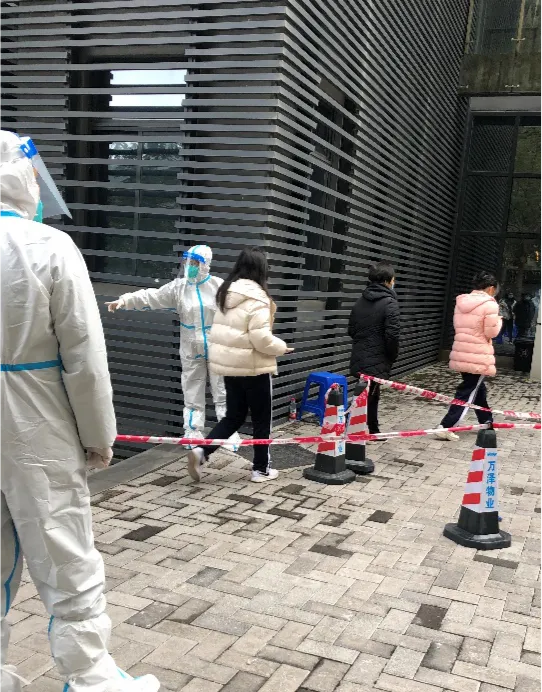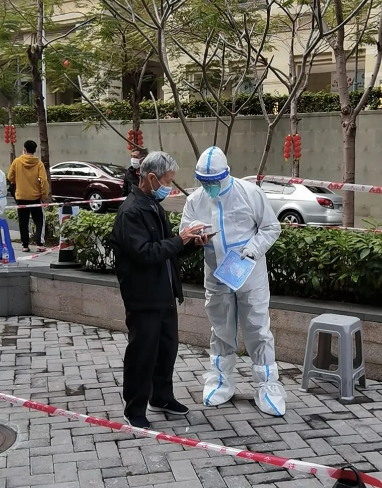 根据社区安排,6名同志被分配到梅京社区映山采样点进行协助扫码、安排人员进出和个人信息扫码录入等工作,从下午到晚上,同志们穿着全套防护服一丝不苟的完成着核酸检测采样点各个流程的工作,为群众快速开展核酸检测提供了保障,为社区工作人员及时有序开展工作提供了帮助。