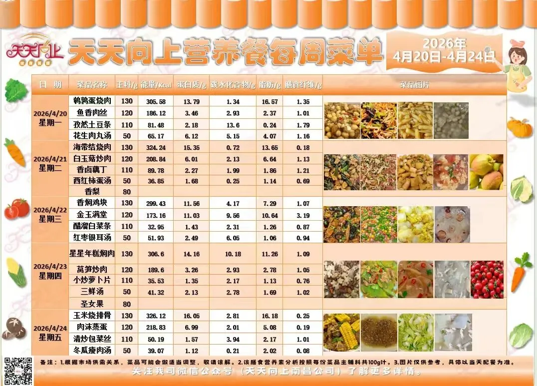 【美好“食”光】 与您相约——南昌市青新小学教育集团食谱(4月20日-4月24日)