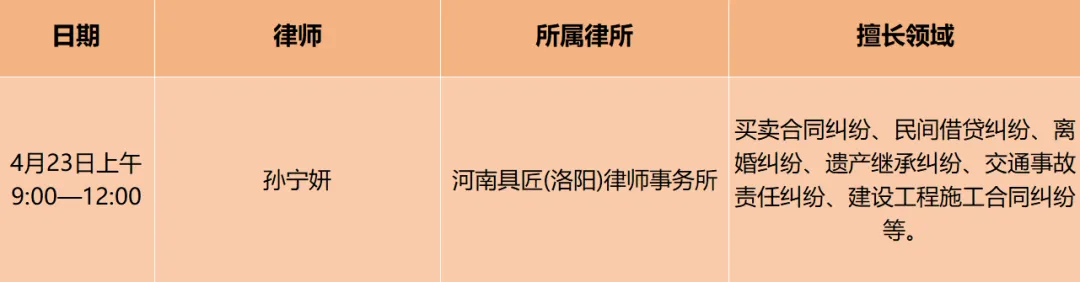南昌路街道公共法律服务工作站下周律师值班安排(4月23日)