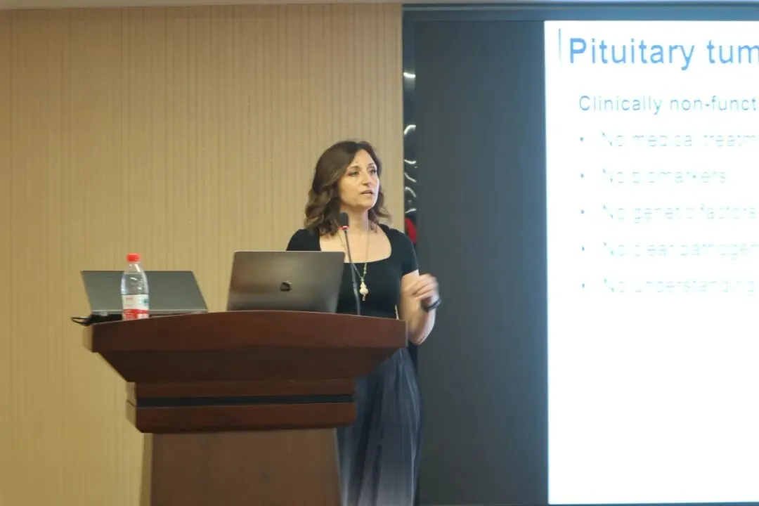 Federica Begalli博士围绕 “Novel genetic aspects in endocrine tumours”展开专题报告。她系统梳理了垂体肿瘤的临床诊疗现状,指出无功能垂体肿瘤、遗传性生长激素分泌型垂体瘤等疾病仍存在诸多痛点。其团队通过构建人源垂体肿瘤类器官、基因工程小鼠模型等多维度研究体系,深入解析垂体肿瘤的分子发病机制,挖掘新型生物标志物与治疗靶点,并探索垂体肿瘤、先天性垂体功能减退、甲状腺髓样癌等疾病的遗传结构,为罕见内分泌疾病的精准分型提供理论支撑。她强调,针对家族性遗传综合征患者的早期筛查与长期随访,是改善患者预后的关键。