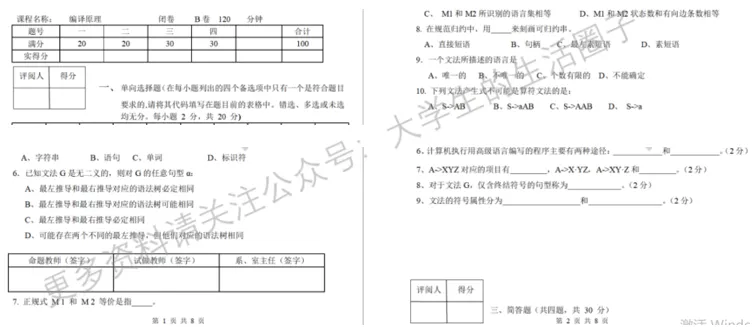 特别是历年期末试卷