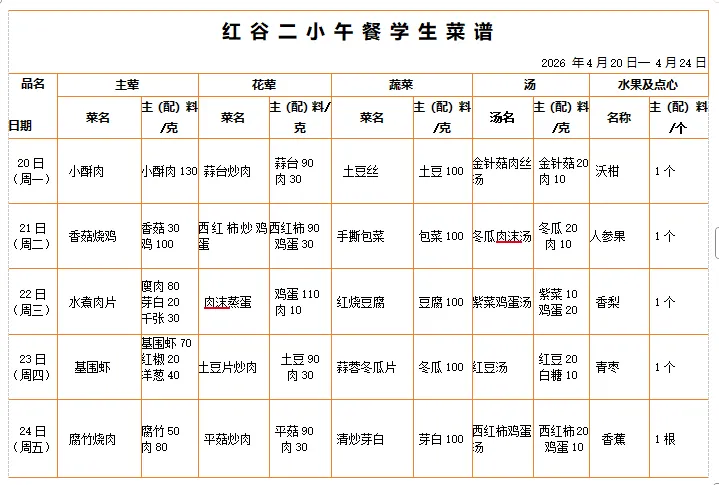 学生菜谱公示