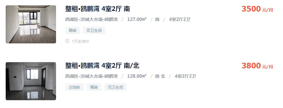 搜了一下南昌近几年交房的次新房的120平+的租金,基本都在3千+,地段稍微好一点或是装修好一点的话,价格4、5千都很正常。