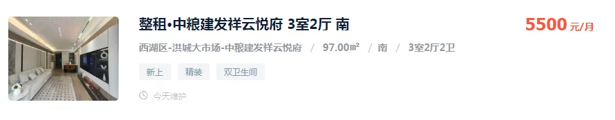 比如说,祥云悦府有一套97平带装修的租金5千……