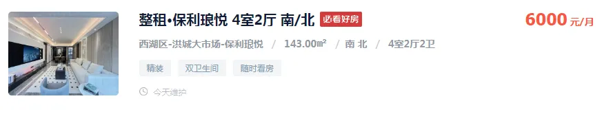另外,保利琅悦一套143平的看起来装修不错的,租6千……