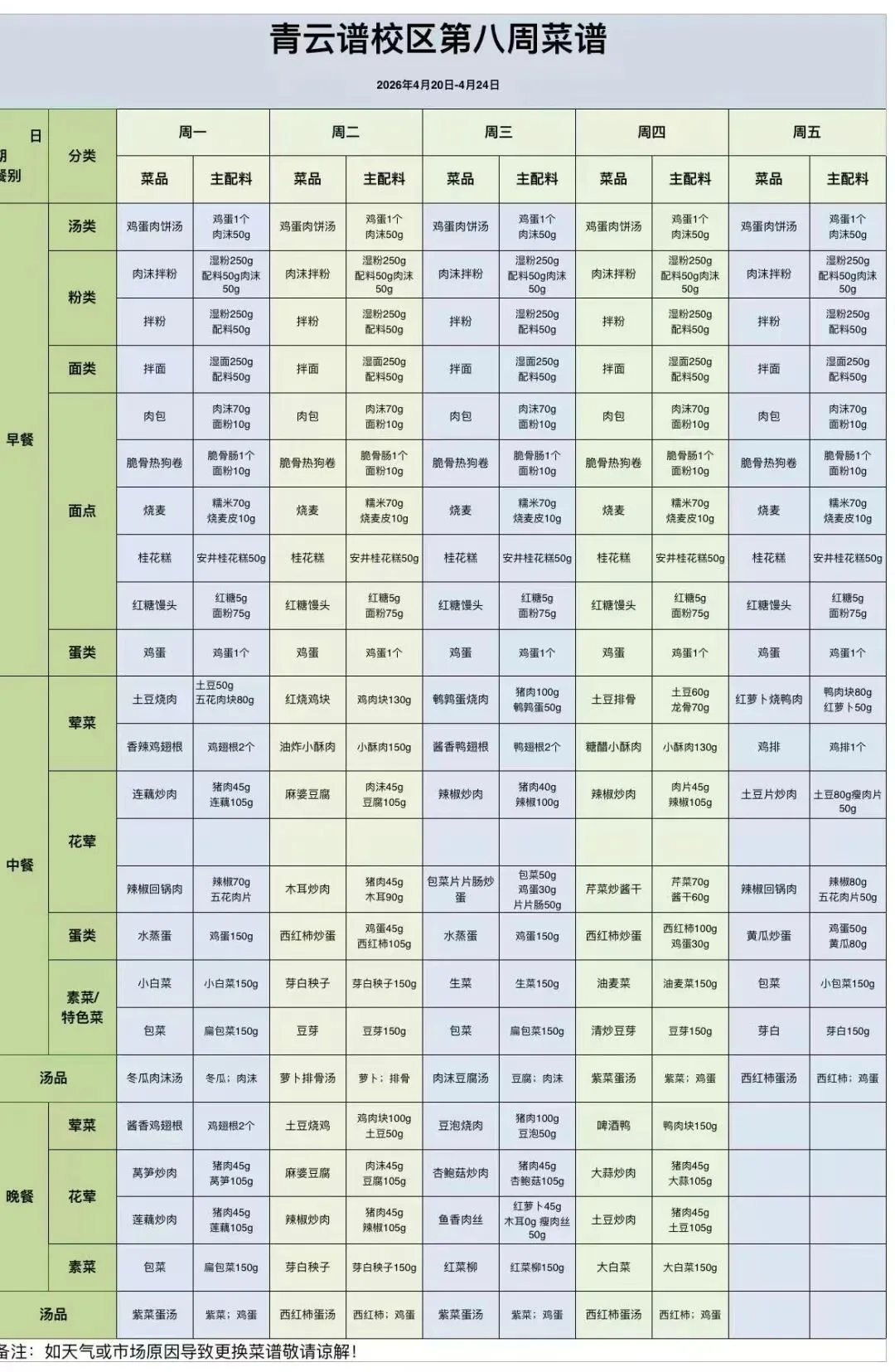 青云谱校区食谱