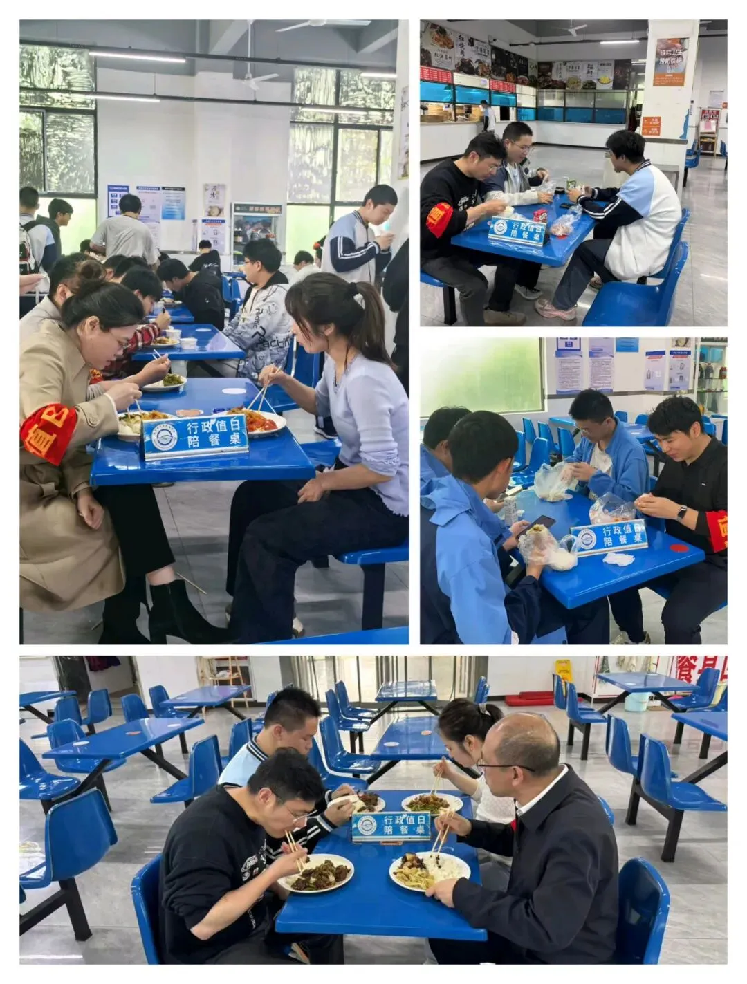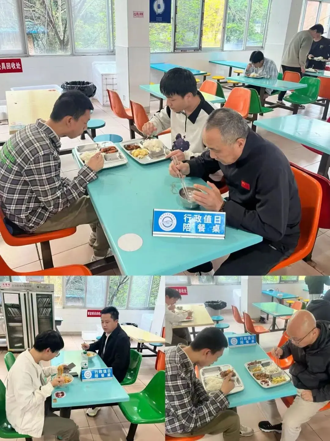 一餐一饭皆牵挂,老师陪餐护成长。走进食堂与学生同桌用餐,及时倾听需求,筑牢食品安全防线,温暖陪伴每一餐。