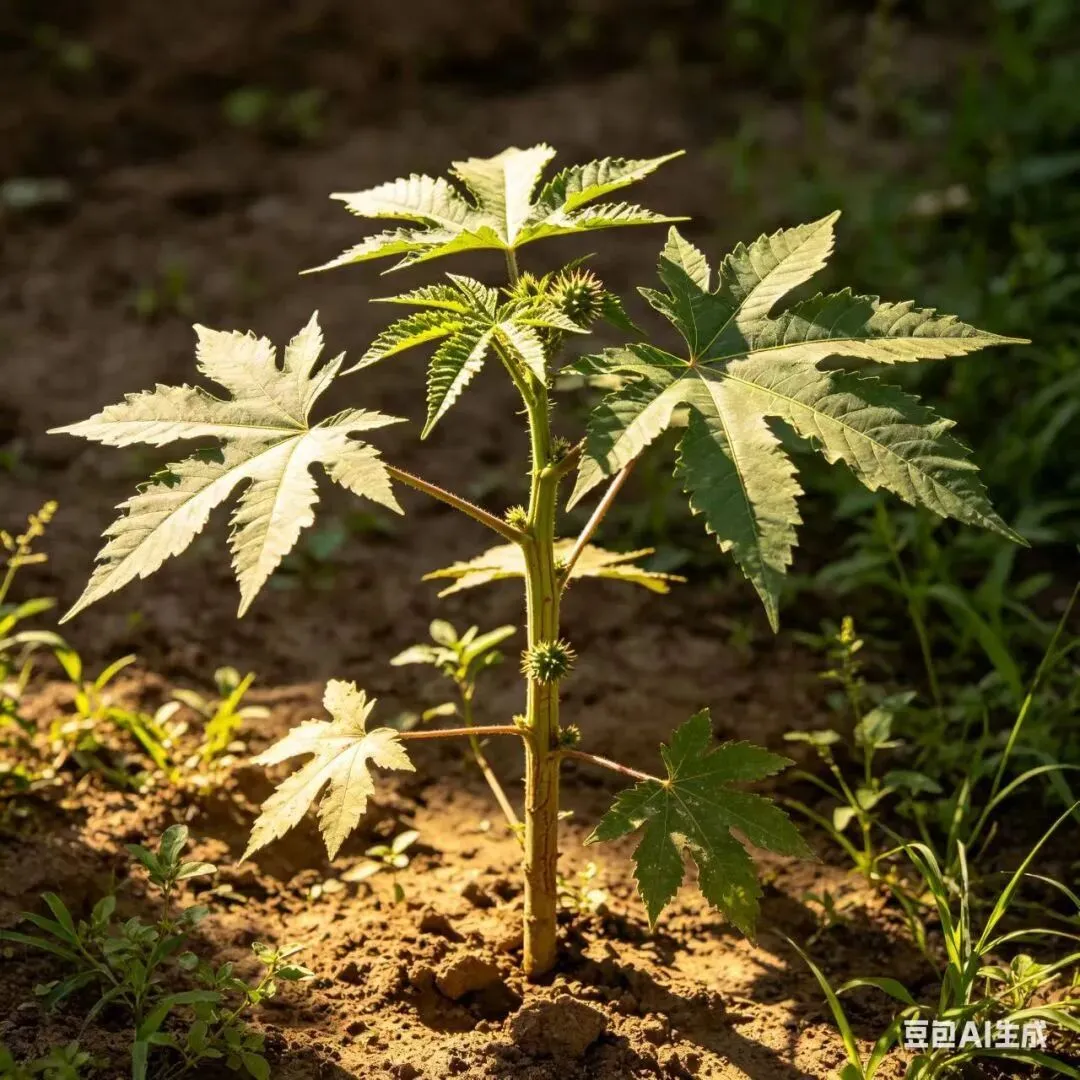 识别要点:蓖麻为一年生草本植物,植株较高,叶子大而呈掌状分裂,果实为蒴果,表面有软刺,成熟后会开裂,露出黑色或棕色的种子,种子表面有花纹。家长和老师要教育孩子认识蓖麻,不要因为好奇而采摘或误食其种子。