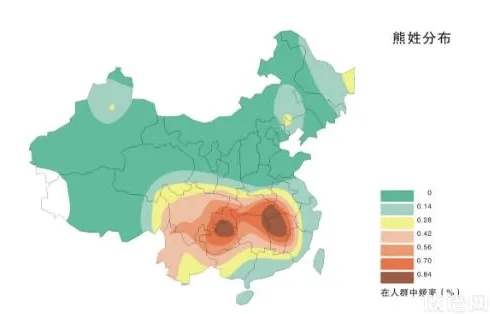 作为一个典型的南方姓氏,熊姓主要分布于鄂赣川湘黔五个省份。宋朝和明朝时期,江西曾是熊姓的第一大省。