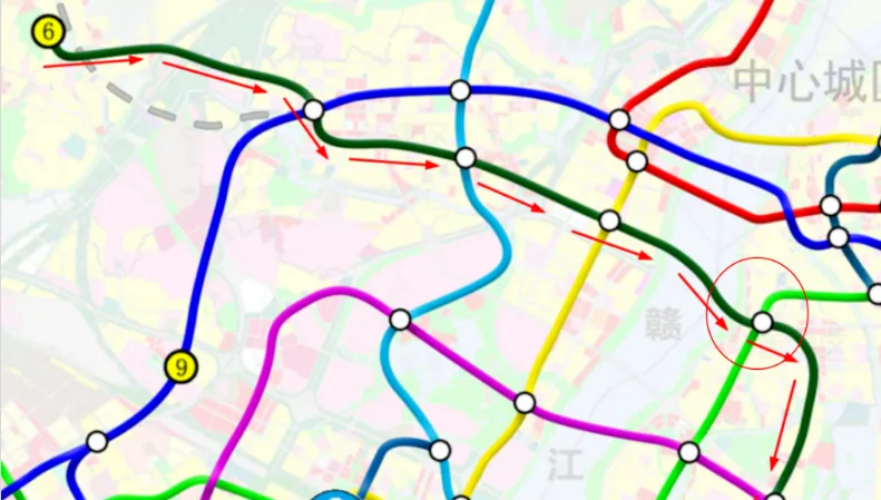6号线一期:起自湾里站,止于南昌大桥东站,线路全长17.5km,全部采用地下形式敷设,设站14座,平均站间距为1.35km,新建1座车辆段及1座主变。