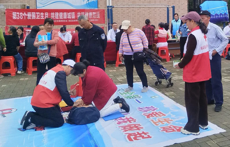 同时,南昌县红十字会的工作人员还在现场演示了心肺复苏等院前急救操作,向居民普及了突发情况下的自救互救知识。现场共发放各类宣传折页、健康手册和实用宣传品500余份,覆盖居民200余人次。