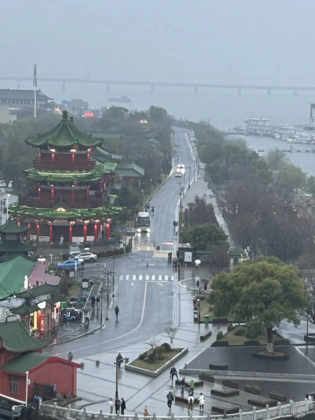 吃完以后又休息了一会儿然后就开始化妆。大概快5点,我们就出门去了滕王阁,我们住的酒店可以步行10分钟不到就能到滕王阁。虽然下着雨,但是我们还是步行去了。