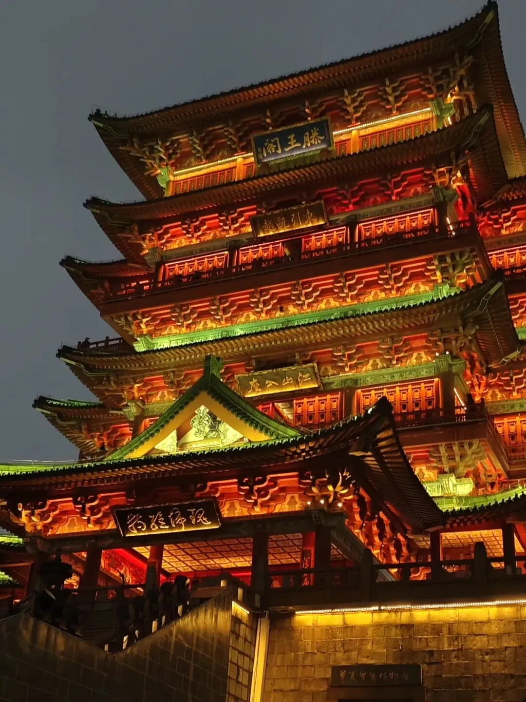 我们一直在滕王阁逛到了7点多,夜景也很美。如果你想白天和夜景都想看到的话,建议买17-19点时间入园的票,票价50元,据说背全文《滕王阁序》或者抽背段落,都能免门票。我背不下来,只能花钱买门票进来了。