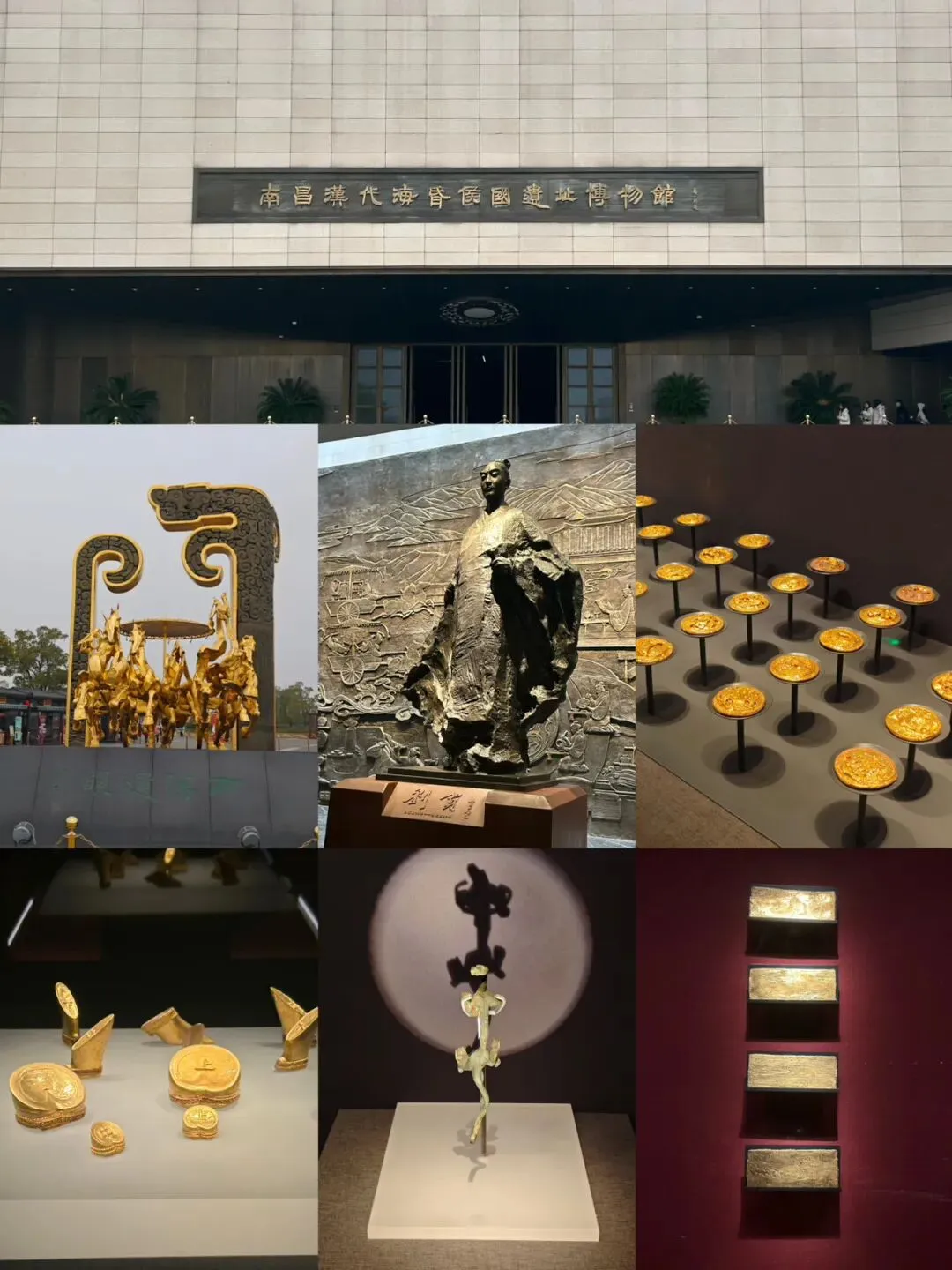 我们到了门口以后先进去坐景交到博物馆,然后博物馆一楼有一个馆,2楼有3个,有一个没开。主要是看一楼的“遇见海昏”还有二楼的“金色海昏”,那个ai体验馆没有什么好看的。