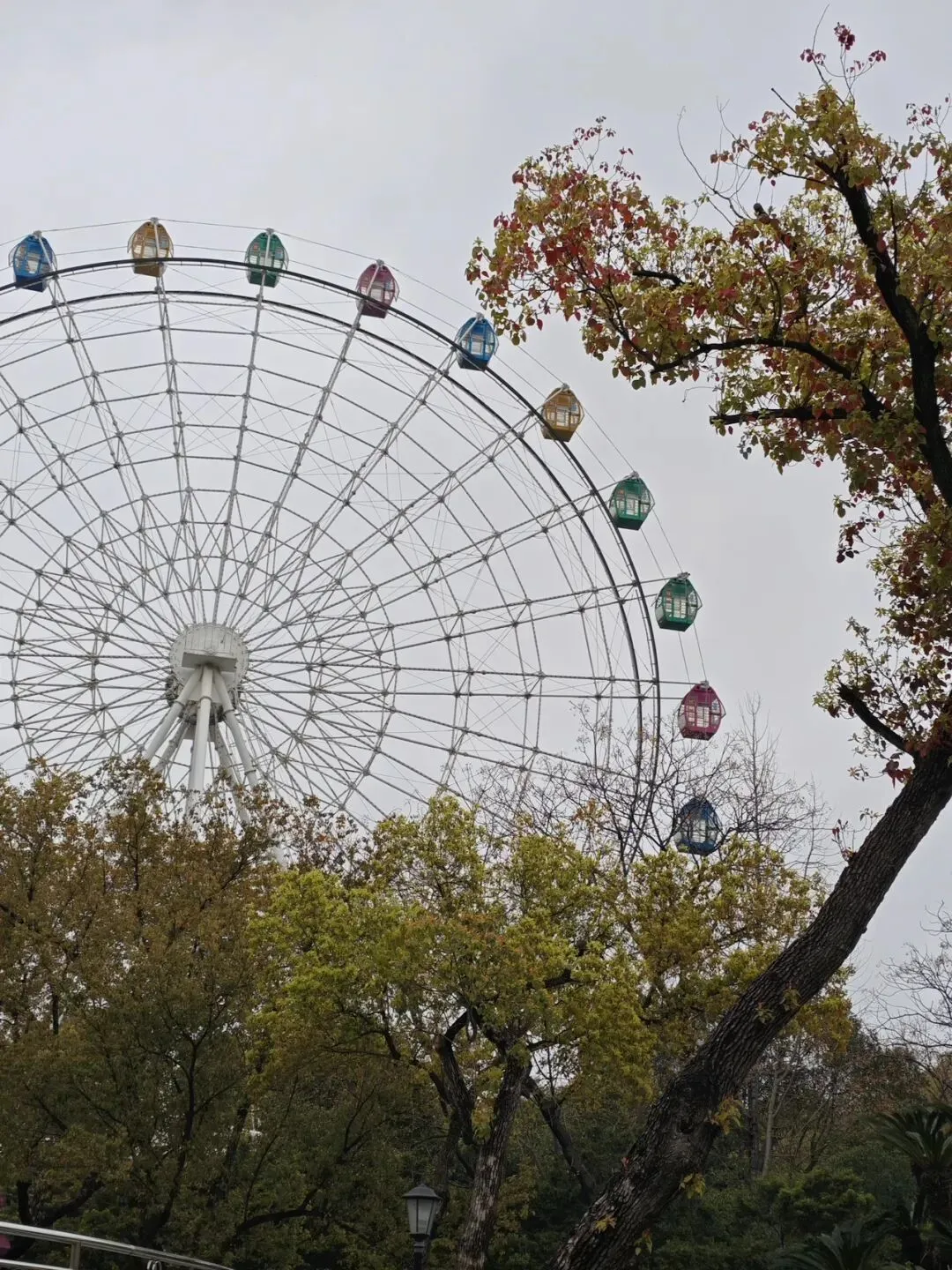 是在居民楼附近的,比较偏。但是味道绝了!超级好吃,不过我看店里人不多,主要是外卖比较多,当然也有可能是我们去吃的时候已经不是饭店了。之后我们就回到酒店。化妆休息。4点左右出门去了人民公园。人民公园除了绿化还有各种<童年回忆>,什么海盗船、摩天轮、秋千等等。