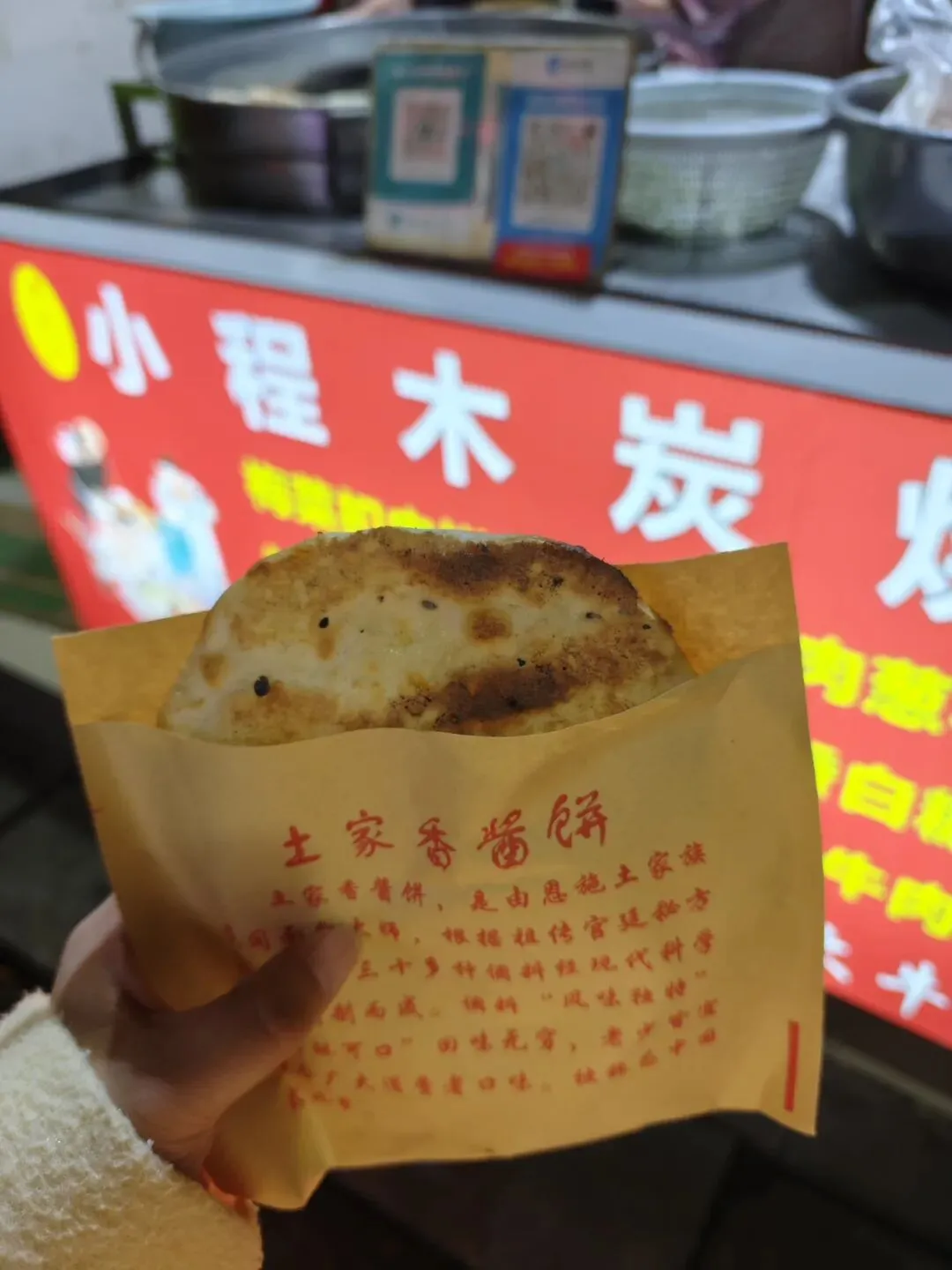 因为太辣正好同事推荐的烧饼店也在附近,我们就去买了白糖烧饼,2元,超级好吃,很上头,阿姨都要关门了,我吃完了一个又买了一个哈哈。